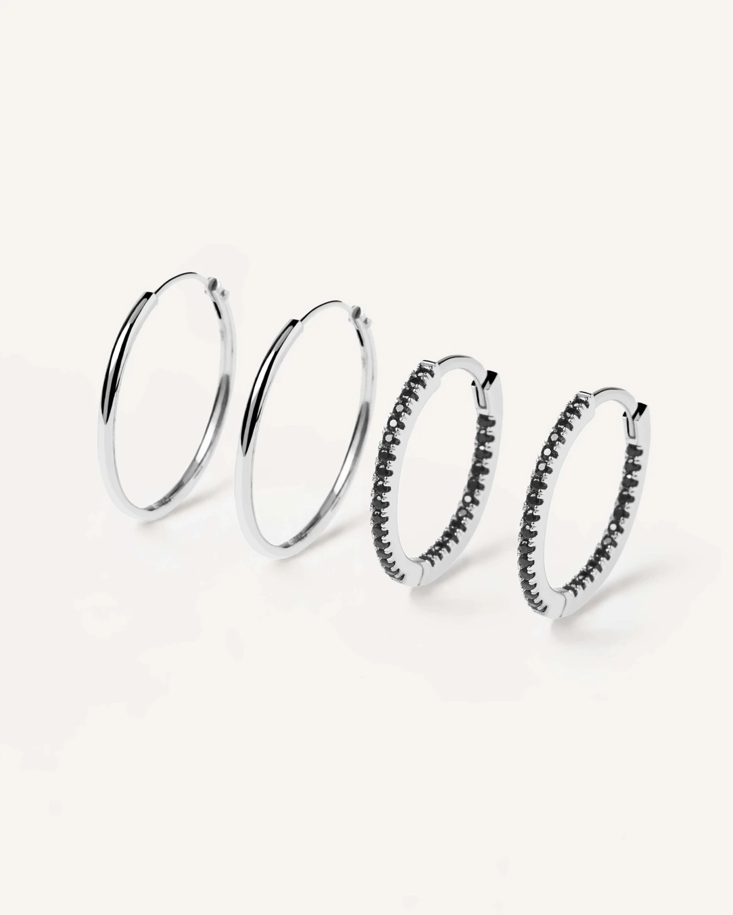 Black Medium Silver Hoops Bundle
