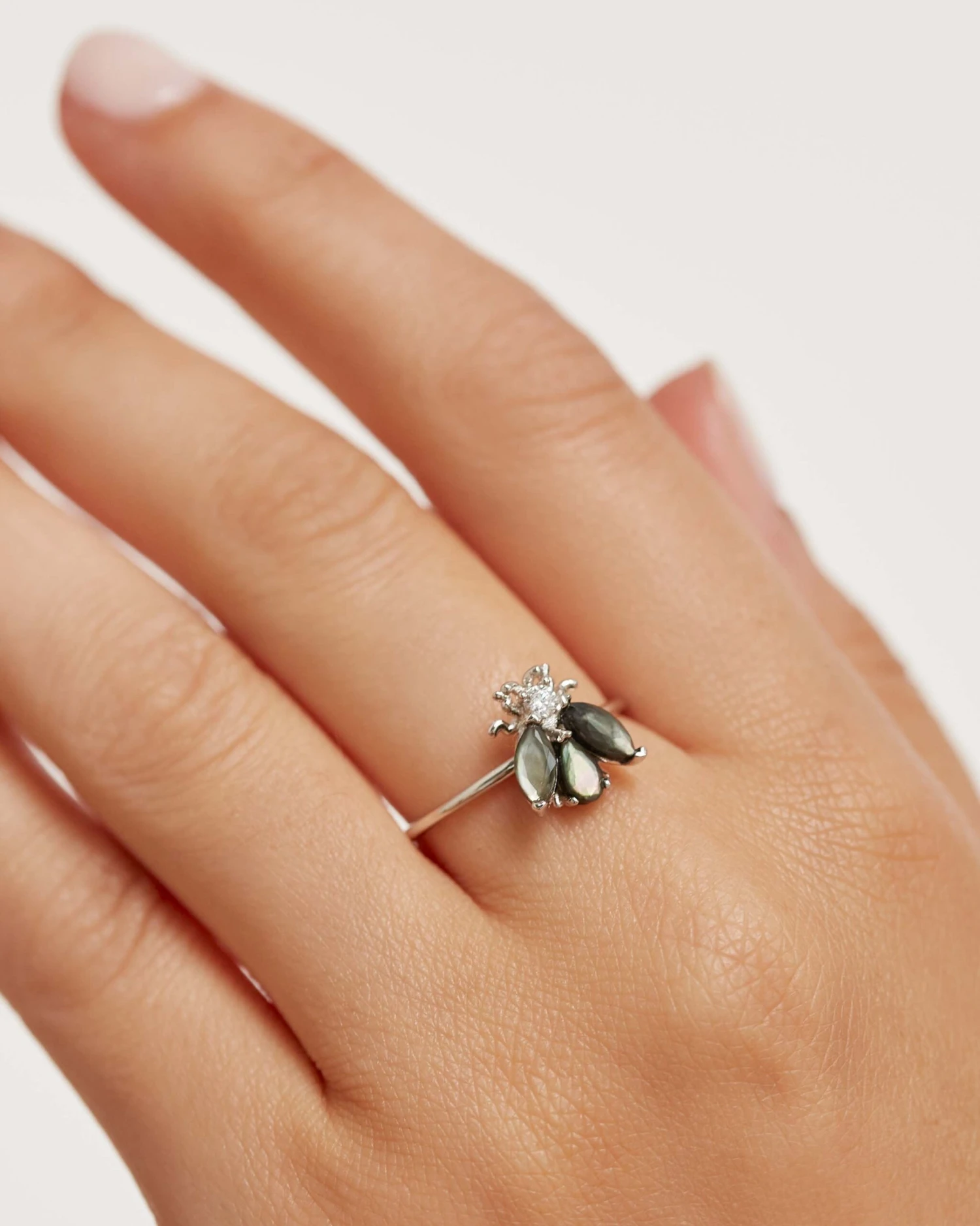 - Green and black Mother of Pearl base and white crystals